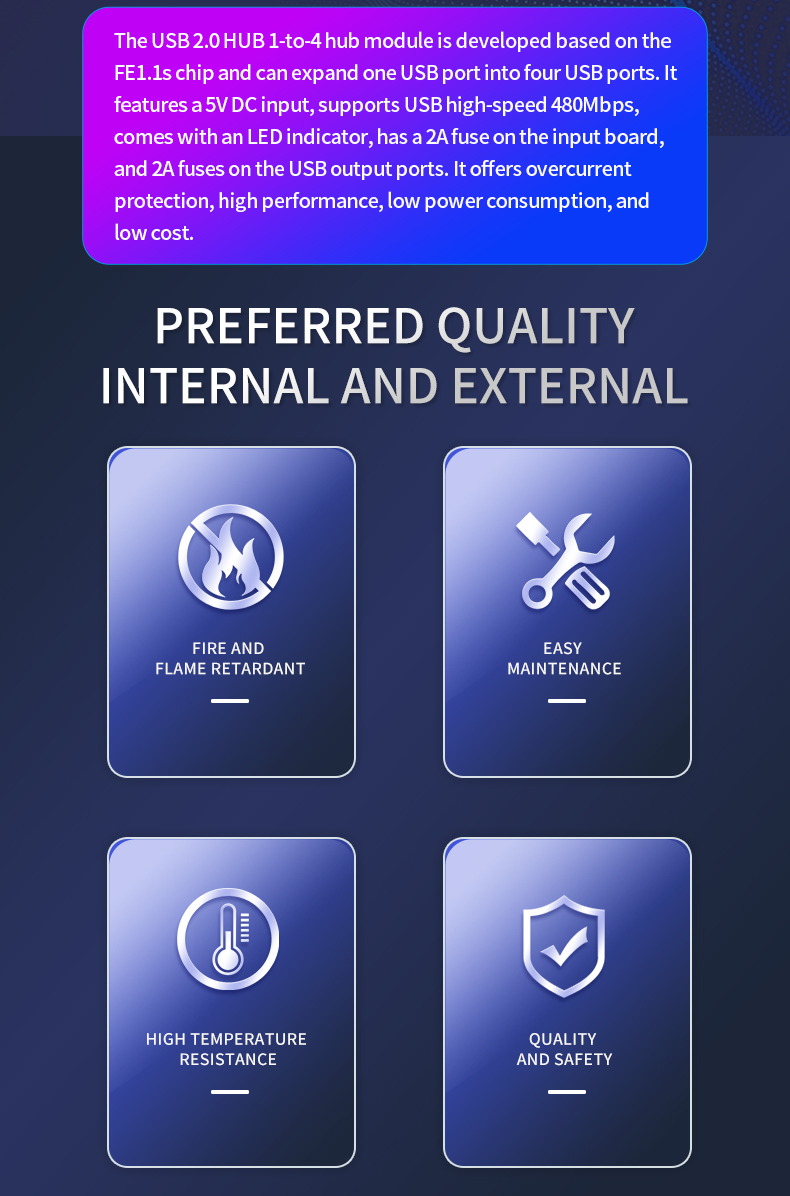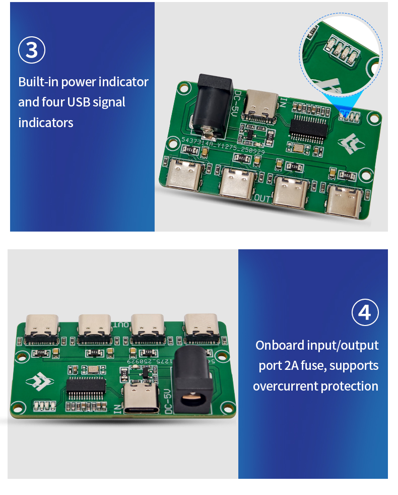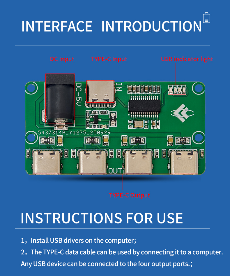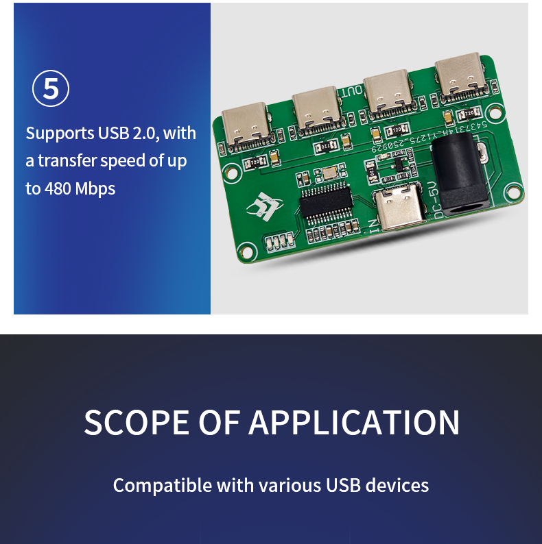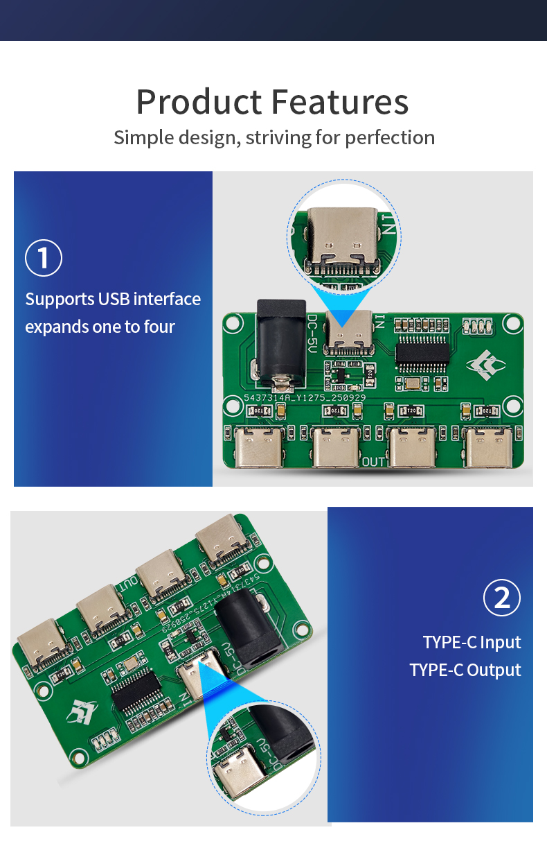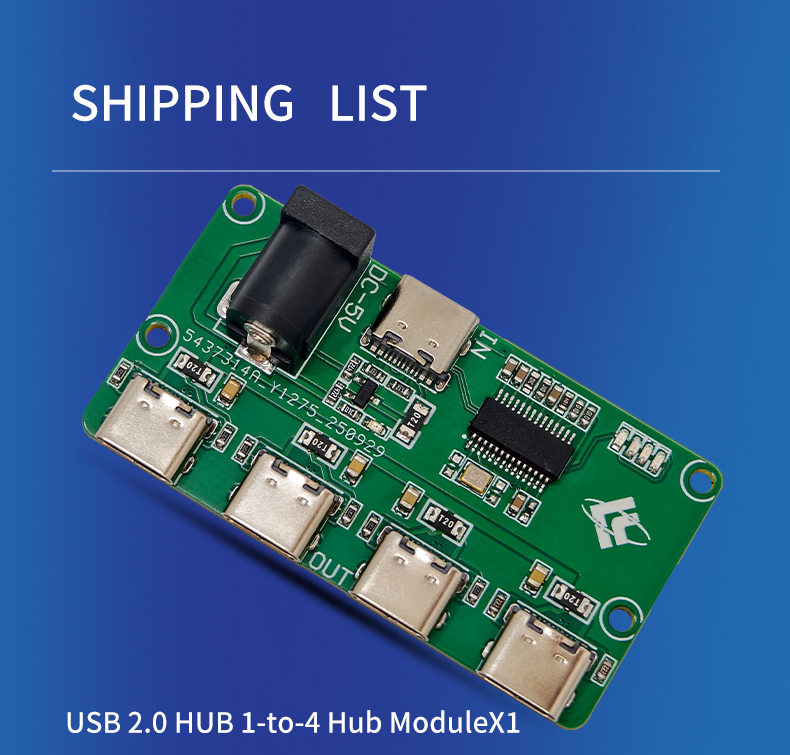 USB 2.0 HUB Module 1 to 4 Ports TYPE-C Input TYPE-C Output