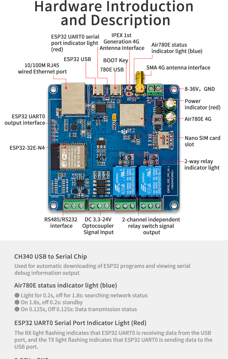 ESP32 Industrial Computer Edge Computing Ethernet WIFI BT 4G