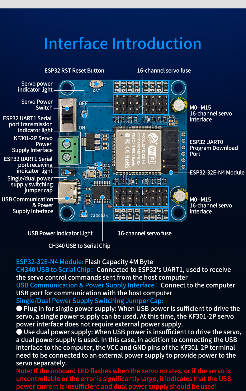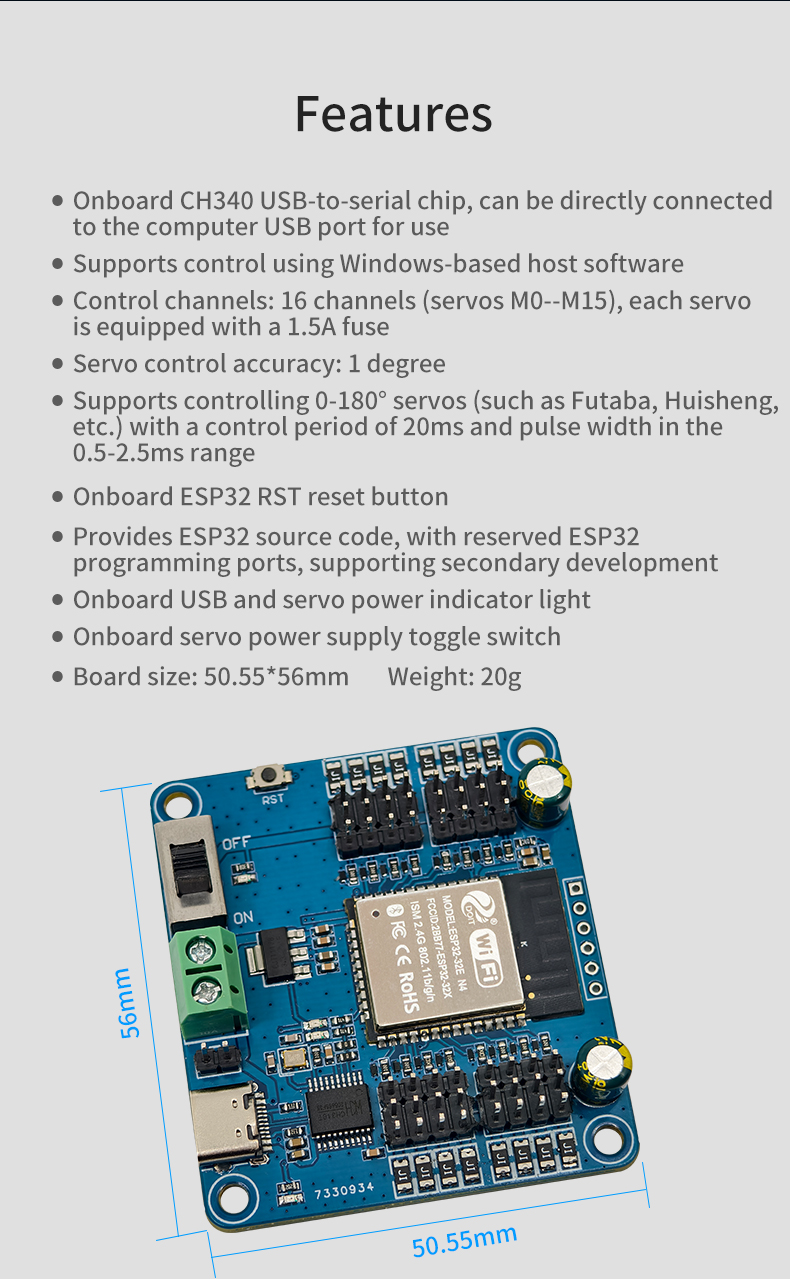ESP32 16-Channel Servo Module USB Serial PC Control WiFi Blu