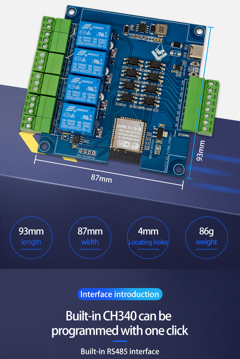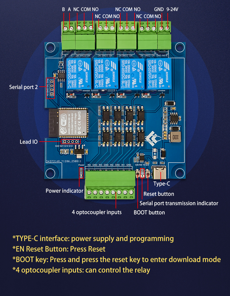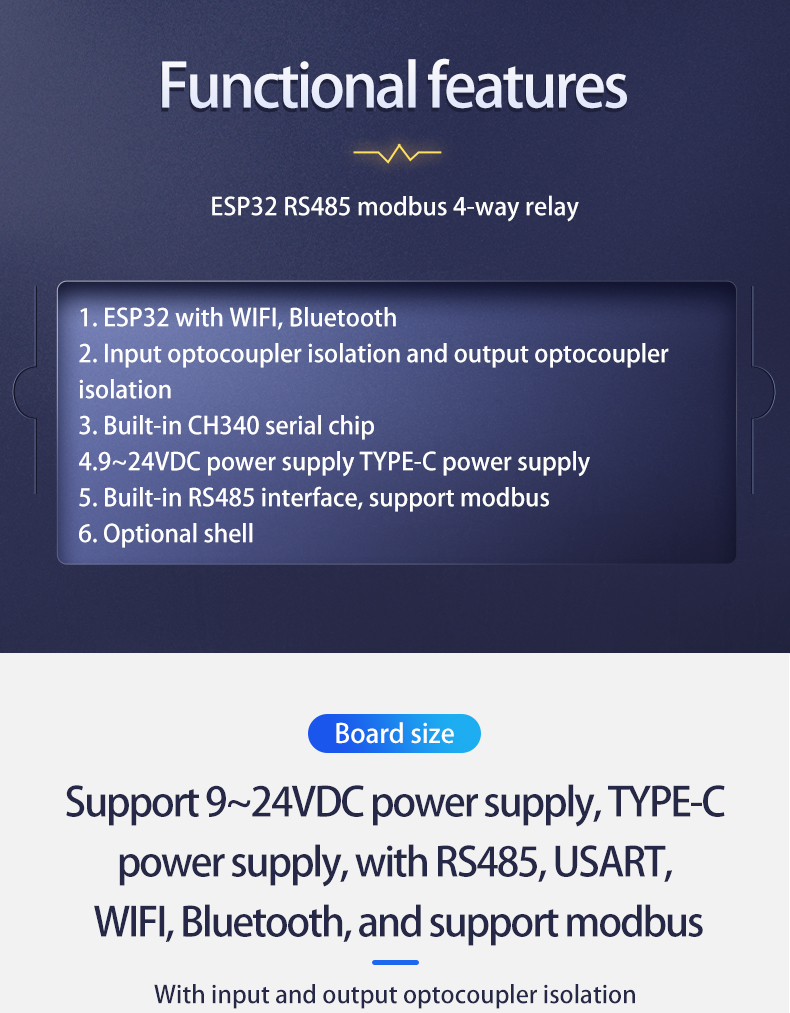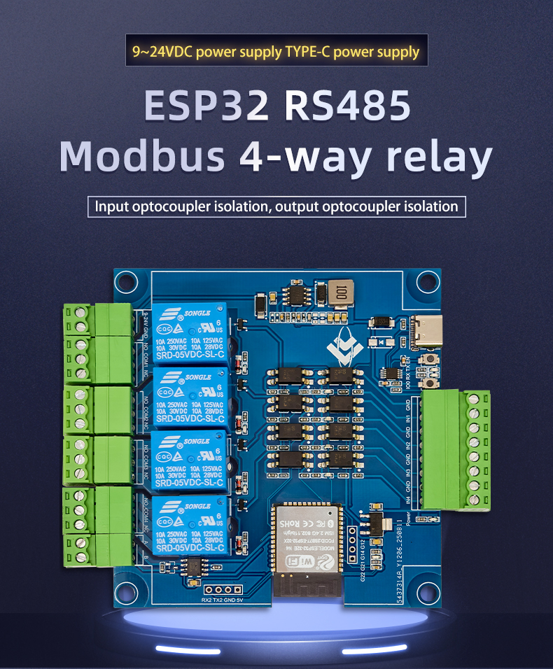 ESP32 Modbus four-channel relay RS485 4 input and 4 output o