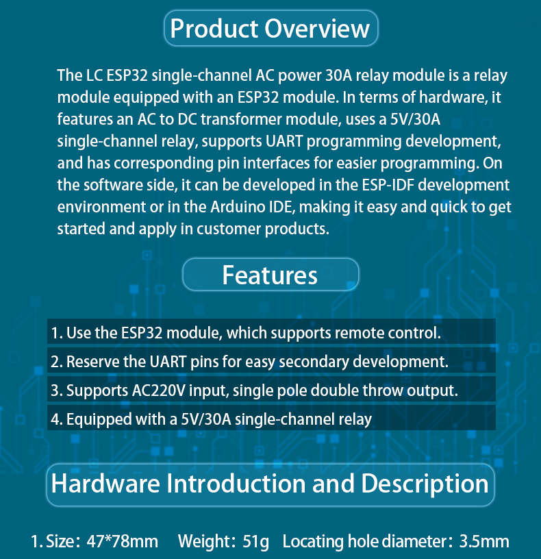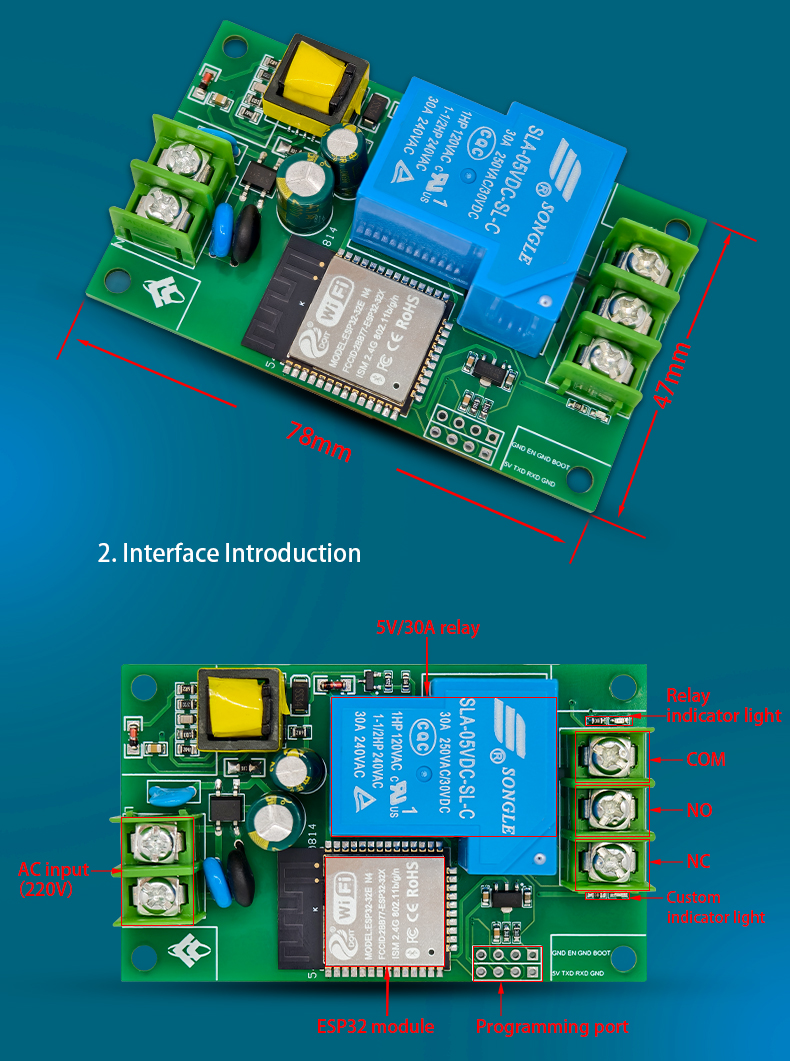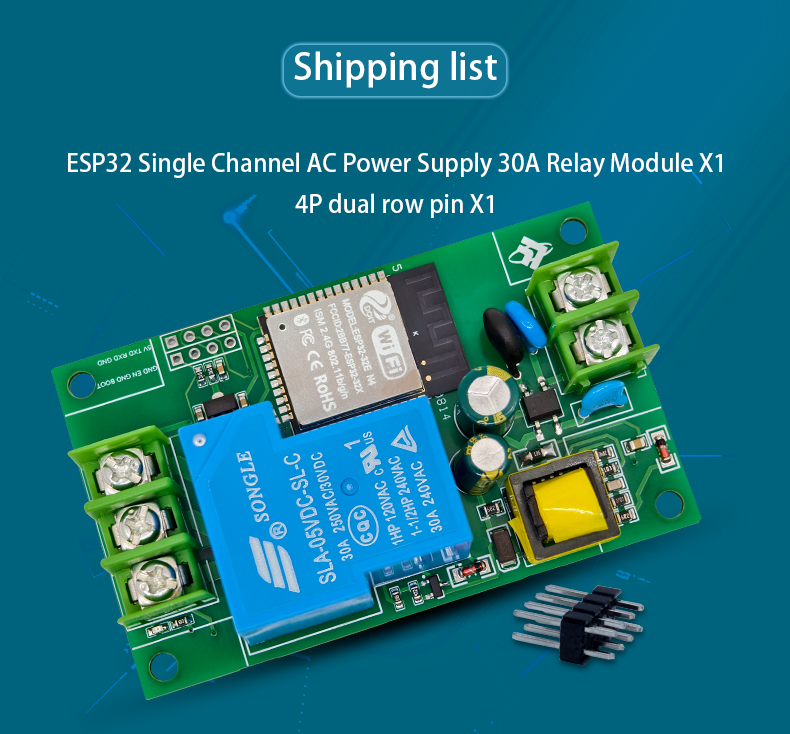 ESP32 single channel AC power 30A relay module WiFi Bluetoot