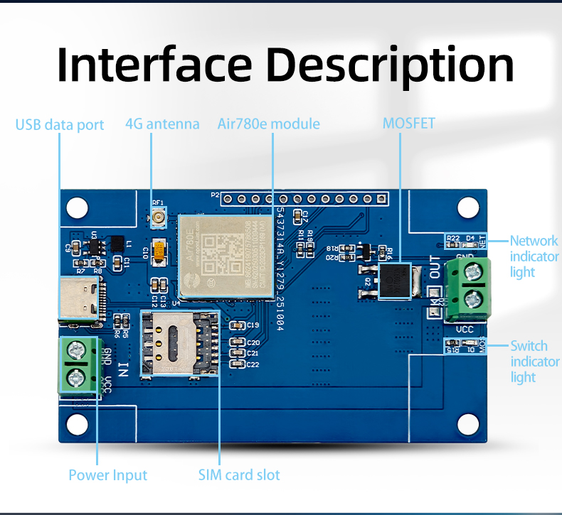 4G Connected AIR780E Single-Channel MOS Switch Module Develo