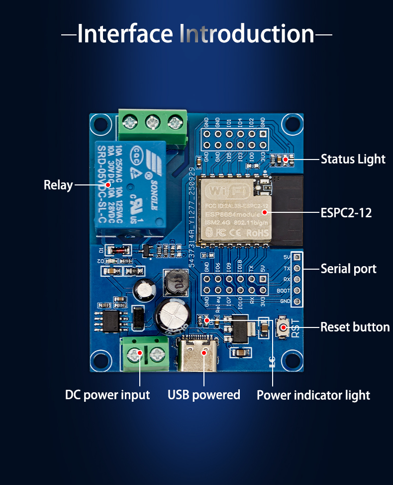 ESPC2-12 Single-Channel Relay Module Development Board DC5-6