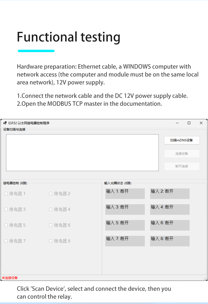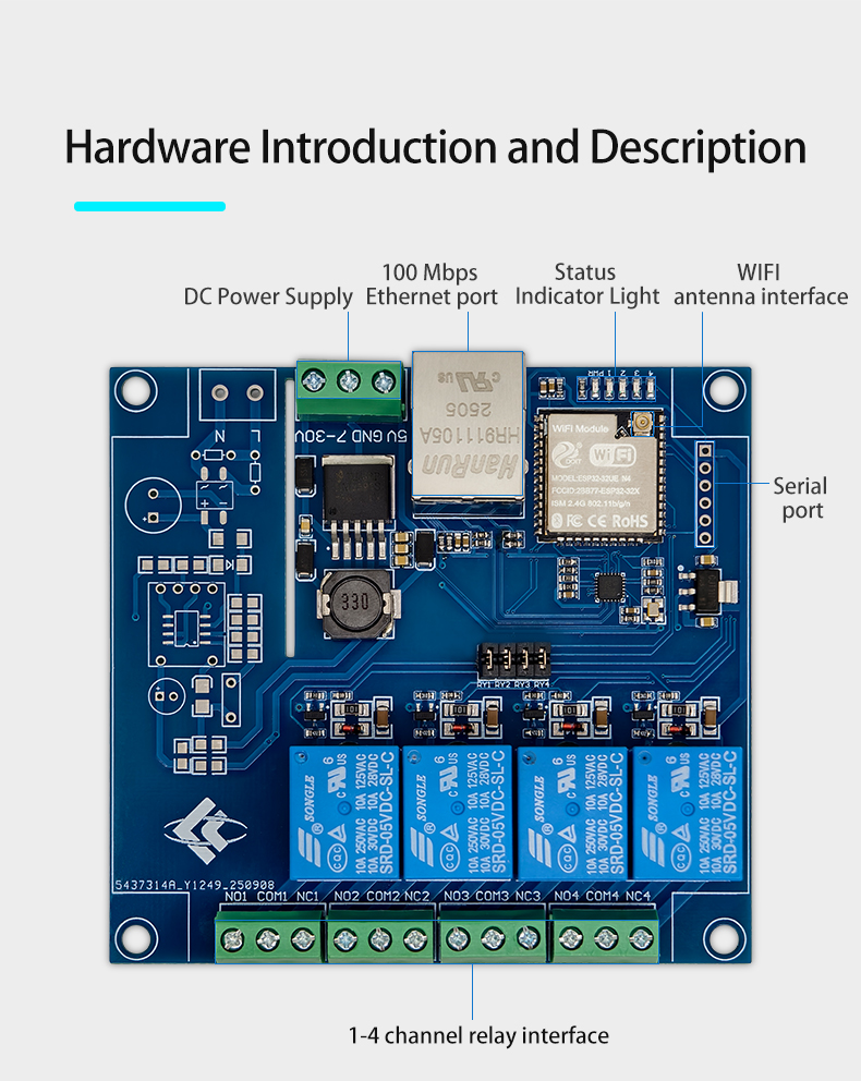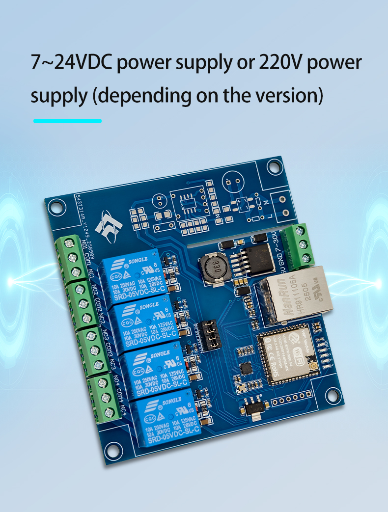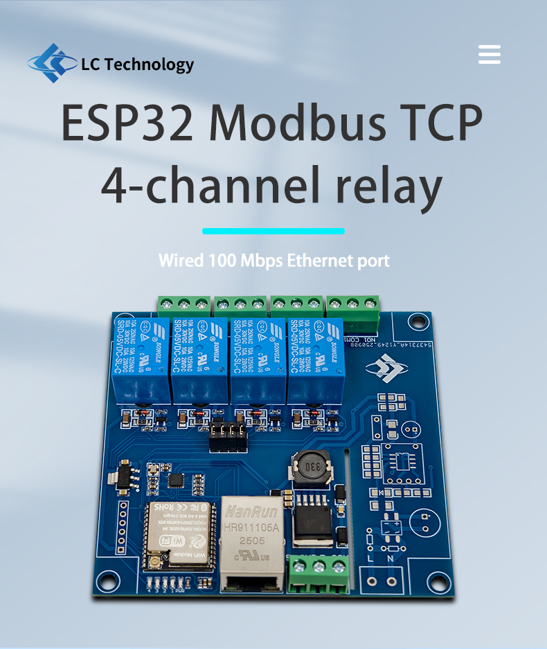 ESP32 Modbus TCP Four-Channel Relay Module Wired/WIFI Develo