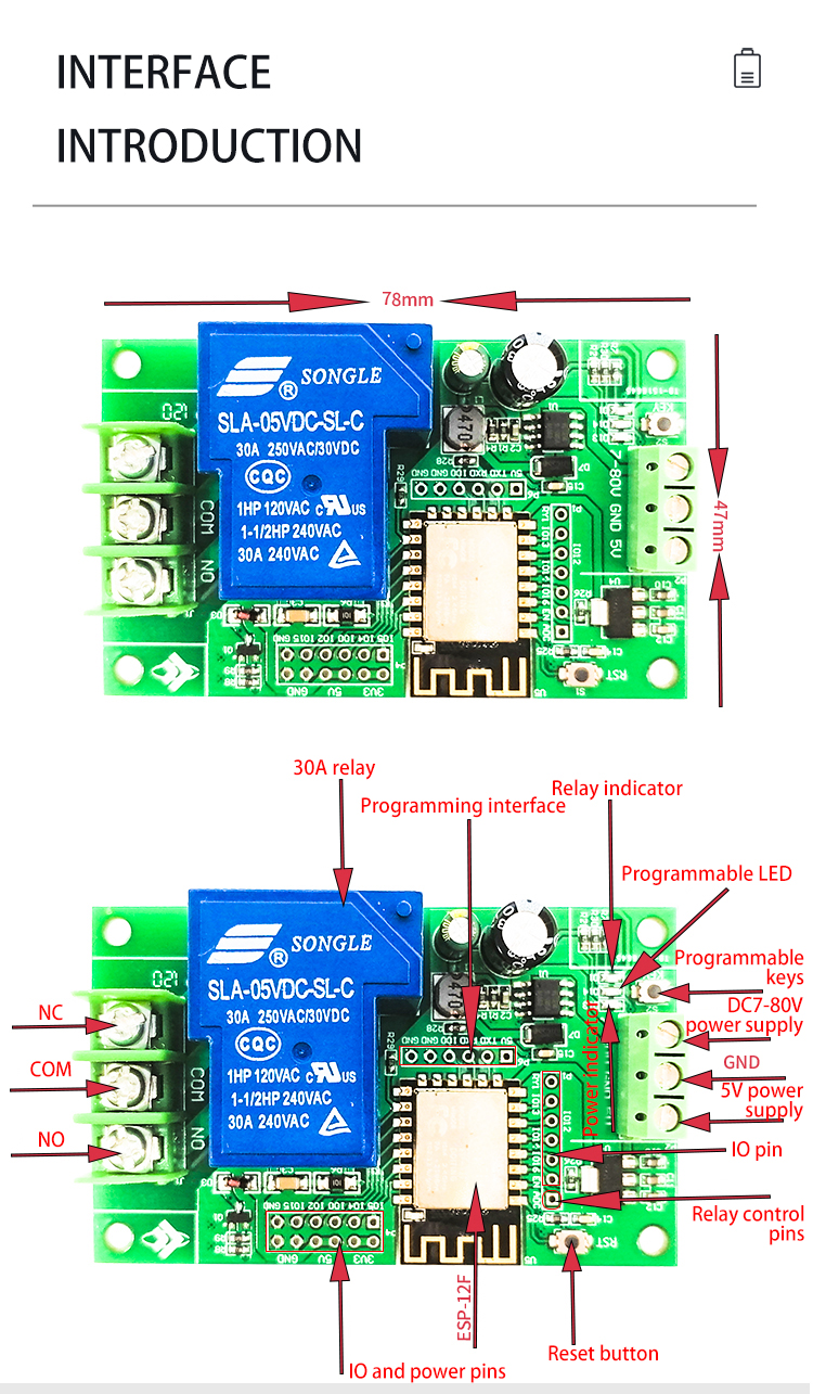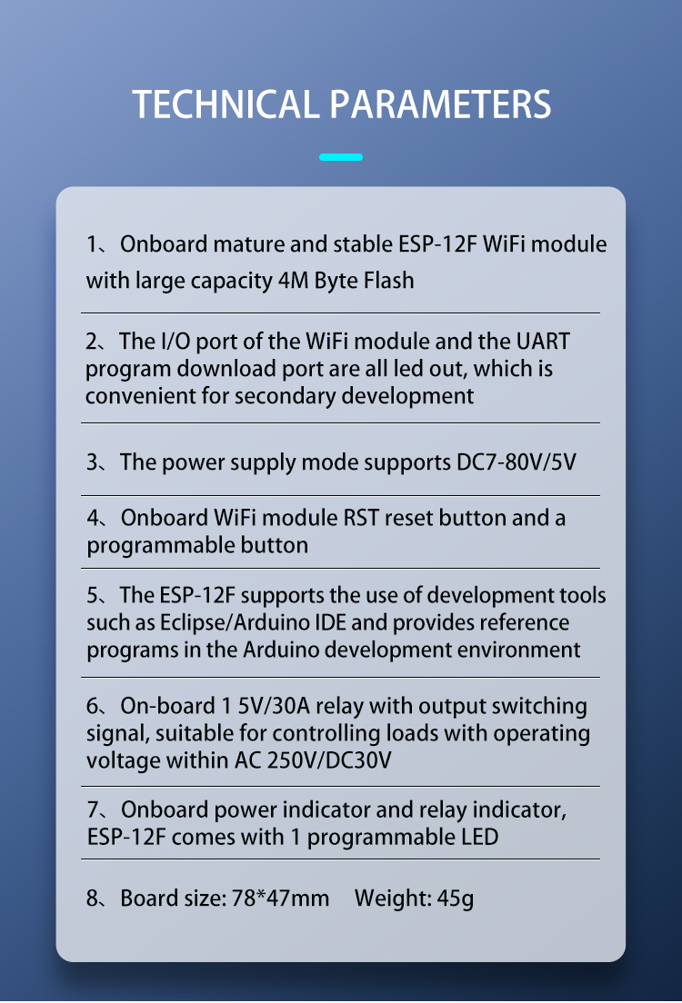 DC7-80/5V Powered ESP8266 WIFI Single Channel 30A Relay Modu