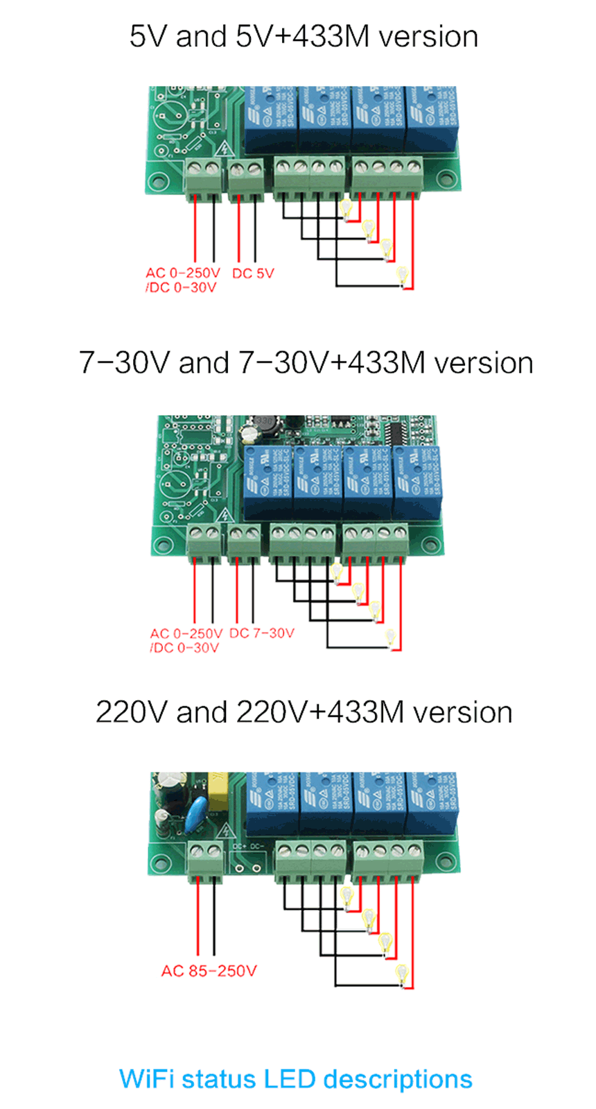 WiFi Smart Switch 4 Channel Without Shell 220V with 433M