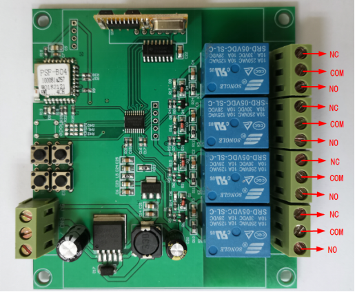 4 channel independent relay output:NO(normally opened end)、COM(common end)、NC(Normally closed end ),Its characteristics are as follows.