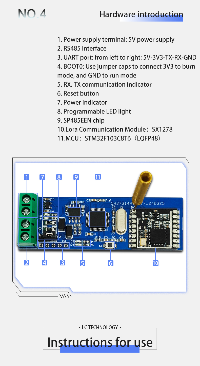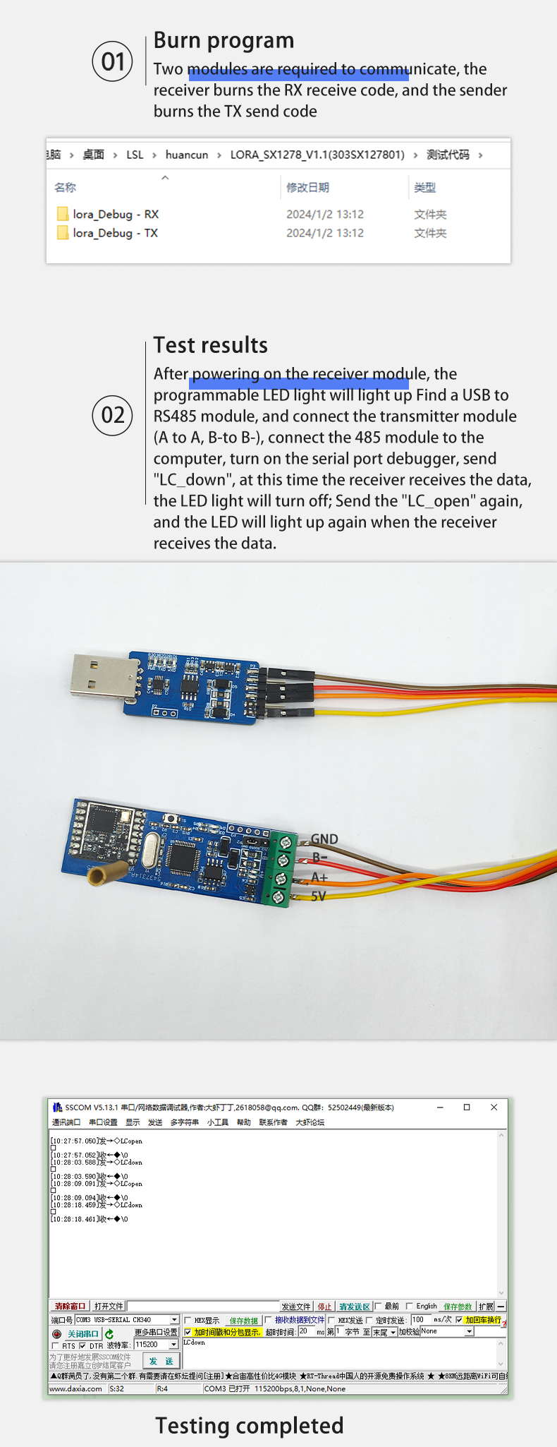 RS485 to LoRa Wireless Serial Communication Transceiver Modu